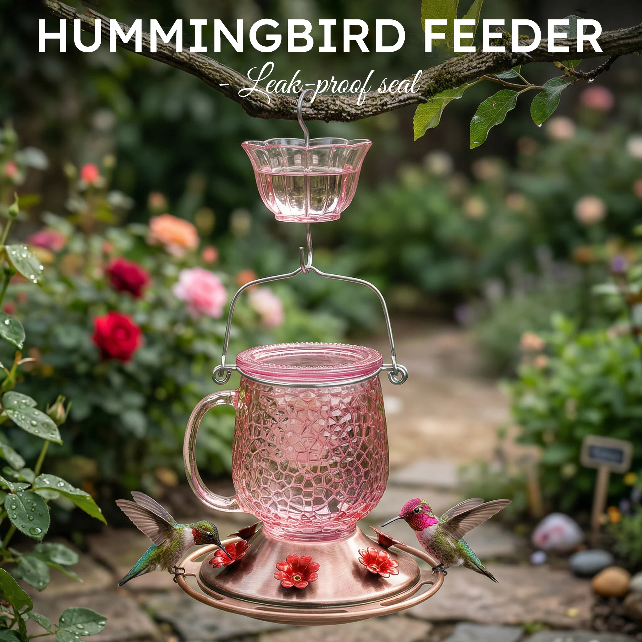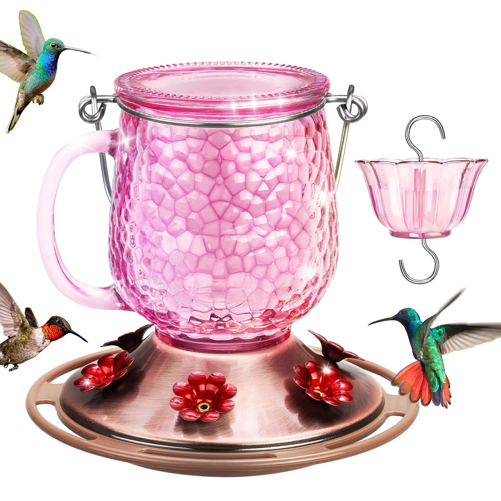 Crafted with a charming flower-inspired shape, featuring 6 feeding ports with perches—allowing multiple hummingbirds to feed comfortably at the same time.